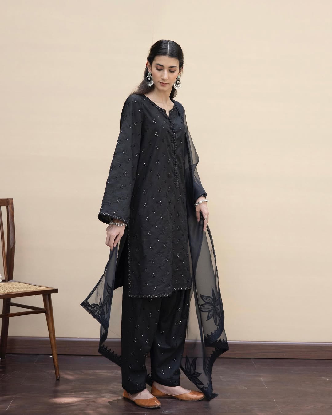 Premium lawn with delicate Embroidery and sequins, paired with an Organza Dupatta & Embroidered Lawn Trouser. Elegant, versatile, and effortlessly chic.